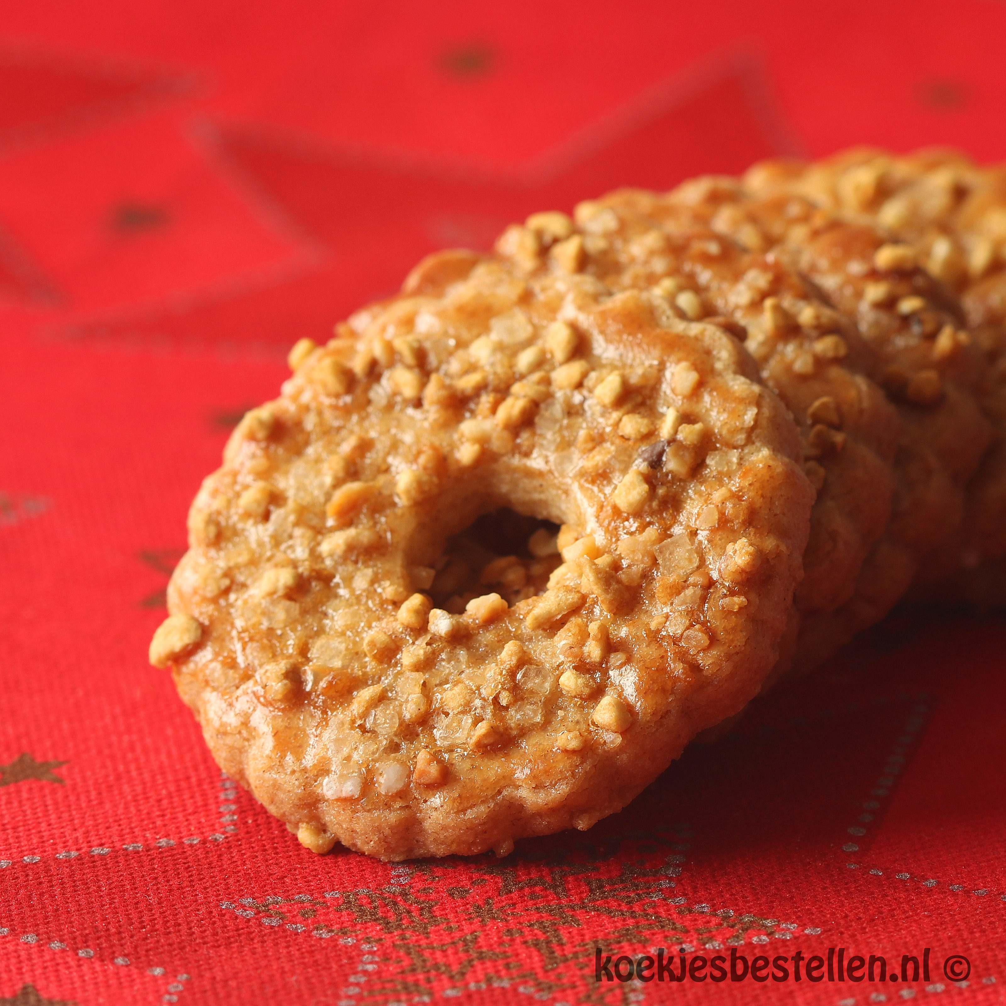 Kerstkransjes die vol smaak en geur zitten door toevoeging van sinaasappelschilletjes, kaneel en gember. Koekjes die door deze warme smaken perfect passen bij de wintermaanden. Door hun mooie afwerking zijn ze ook goed te gebruiken om in de kerstboom te hangen. Wij garanderen echter niet dat uw huisgenoten zich in kunnen houden en ze allemaal in de boom blijven hangen! Gelukkig komen deze koekjes in een ruime verpakking van 27 kransjes. Met diverse toppings: musketzaad in vrolijke kerstkleuren, hazelnootkrokant en witte greinsuiker.